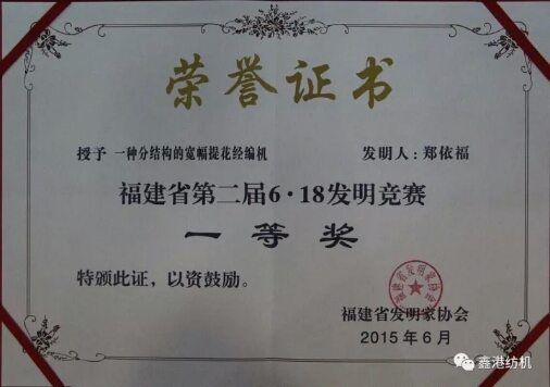 2017年10月19日全國紡織行業(yè)首批“中國紡織大工匠”命名推介大會(huì )暨“工匠精神與誠信文化發(fā)展”論壇在古城西安舉行,鑒于福建省鑫港紡織機械有限公司董事長(cháng)鄭依福先生長(cháng)期以來(lái)致力于經(jīng)編機研發(fā)設計并積極推動(dòng)我國經(jīng)編機裝備智能制造技術(shù)提升所做出的卓越貢獻,大會(huì )授予其“中國紡織大工匠”榮譽(yù)稱(chēng)號,同時(shí)號召大力弘揚紡織工匠精神,培育優(yōu)秀工匠,打造中國紡織行業(yè)新優(yōu)勢。